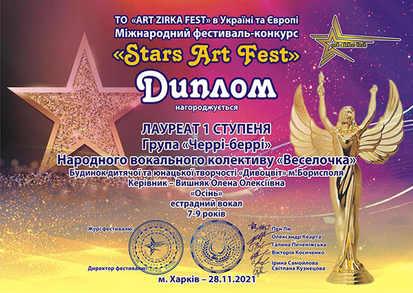 "Черікі" приймали дистанційну участь у Міжнародному фестивалi-конкурсі "Star Art Fest" (м.Харків).