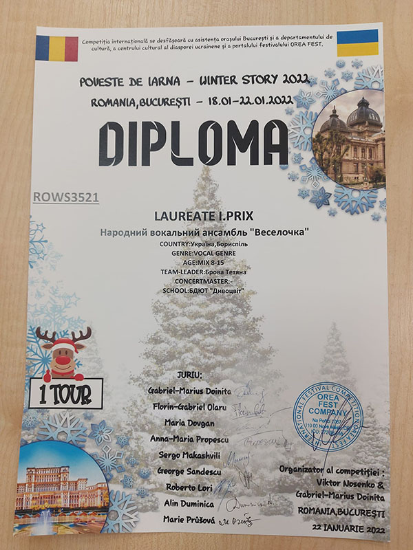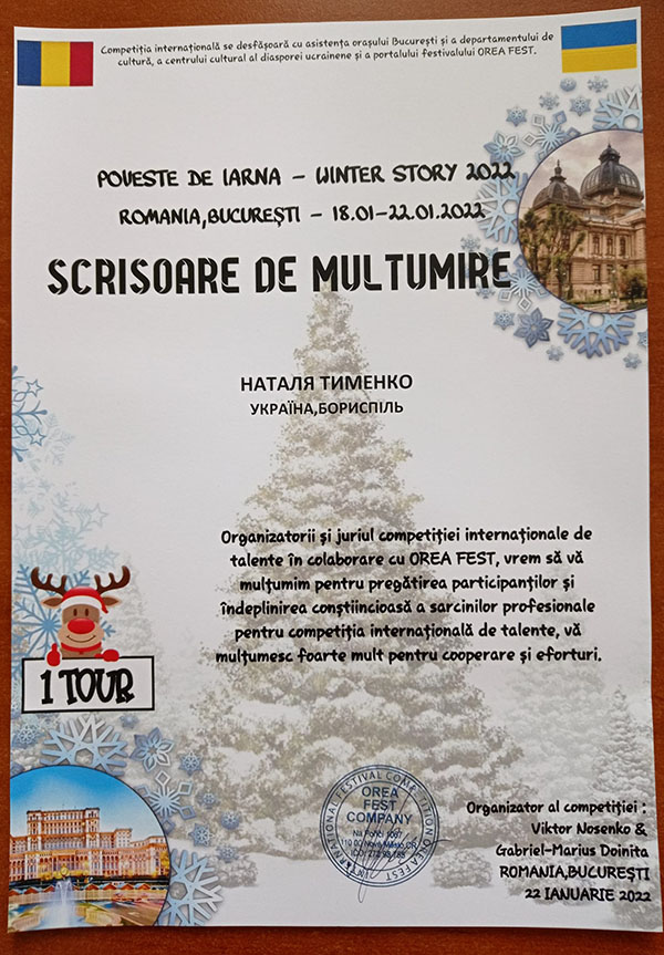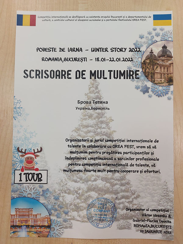 Участь в міжнародному конкурсі WINTER STORY - ROMANIA 2022