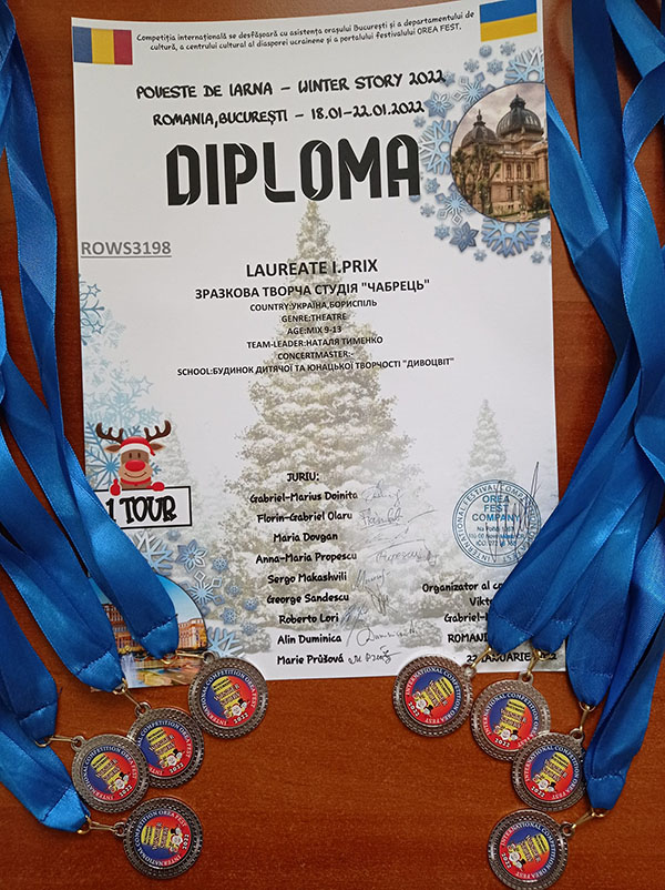 Зразкова творча студія "Чабрець" та Народний вокальний колектив "Веселочка" прийняли участь в МІЖНАРОДНОМУ ДВОТУРОВОМУ ДИСТАНЦІЙНОМУ КОНКУРСІ WINTER STORY - ROMANIA 2022 (РУМУНІЯ-УКРАЇНА). Вітаємо керівників Наталію ТИМЕНКО та юних акторів з І місцем та Брову Тетяну з вокалістами з І місцемпак.