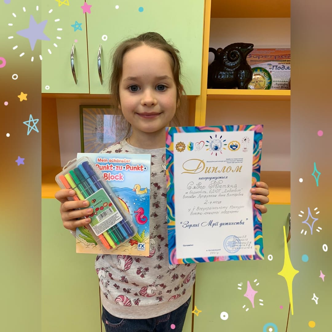 Вихованці гуртків "Арт-майстерня" та Зразкова студія образотворчої діяльності "Райдуга" стали дипломантами V Всеукріїнського конкурсу дитячо-юнацької творчості "Зоряні мрії дитинства". Дякуємо нашим маленьким митцям за безмежну юяву, творчість та за те, що наше майбутнє вони бачать сповненим світла, любові та доброти.