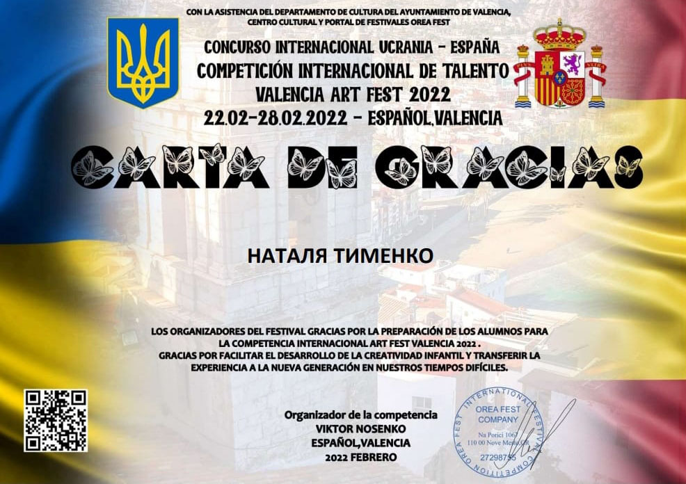 Вітаємо з перемогою Зразкову творчу студію "Чабрець" та керівника Наталію Тименко в Міжнародному конкурсi Valensia Art Fest - Spain. Середня та старша групи - дві вистави - перші місця.