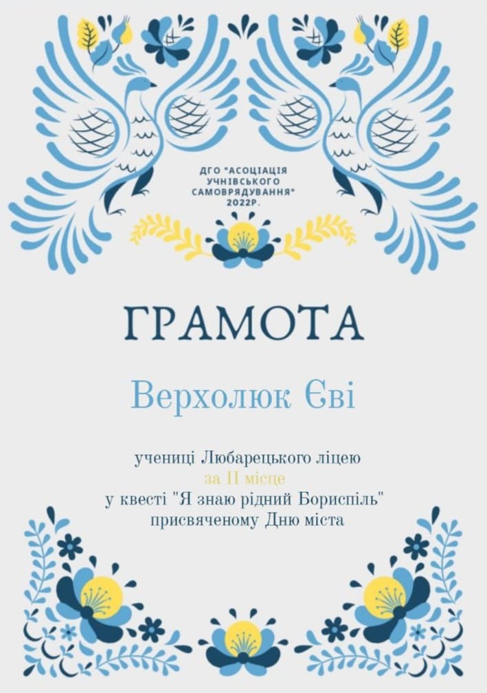 - Любарецький ліцей, Верхолюк Єва - 2 місце