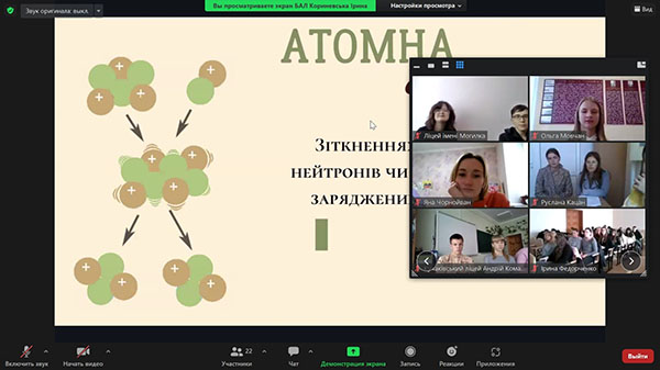 26 вересня - день народження атомної енергетики України та Міжнародний день боротьби за повну ліквідацію атомної бомби. Тож учні-лідери зібралися на онлайн конференцію щоб обговорити переваги та недоліки ядерної енергетики, як вберегти світ від ядерних катастроф та про перспективи інноваційного розвитку атомної енергетики. Адже ці теми надзвичайно актуальні та цікаві, сучасні та гострі у час, коли в нашій країні війна і коли наш ворог загрожує нам ядерною війною.