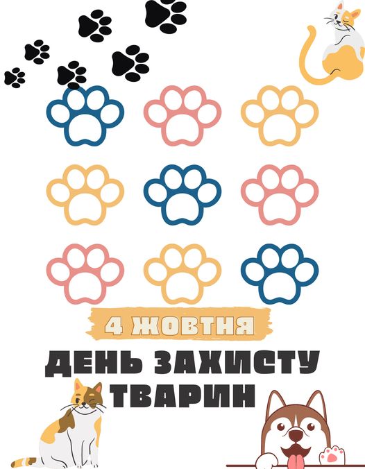 4 жовтня у світі відзначають Всесвітній день тварин — міжнародний день, спрямований на привернення уваги людства до прав тварин та їх добробуту, так як щодня тварини опиняються на межі зникнення.