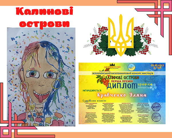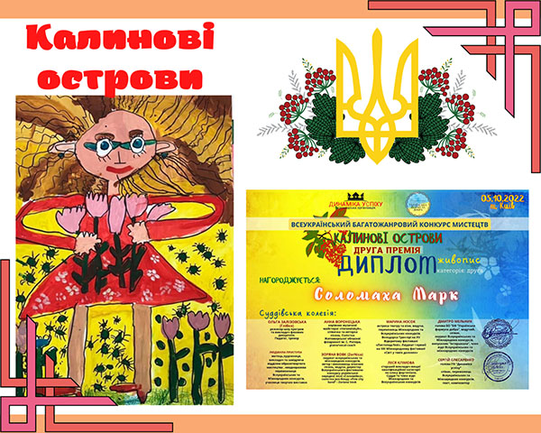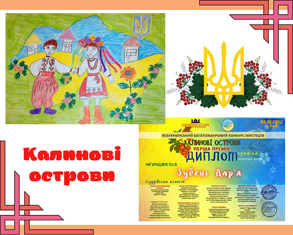 Вихованці гуртків "Академія олівця" керівник Петренко Ю.М. та "Арт-майстерня" керівник Бодашко О.Ю. взяли участь у Всеукраїнському багатожанровому конкурсі мистецтв "Калинові острови". Дякуємо за можливість розкривати наші творчі таланти, стимулювати їх ріст та розвиток, організацію та проведення конкурсу Громадянській організації "Динаміка успіху" та Благодійній організації "Українська формула добра.