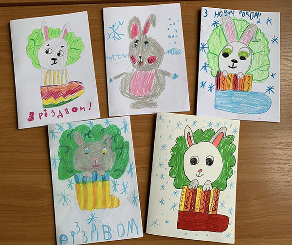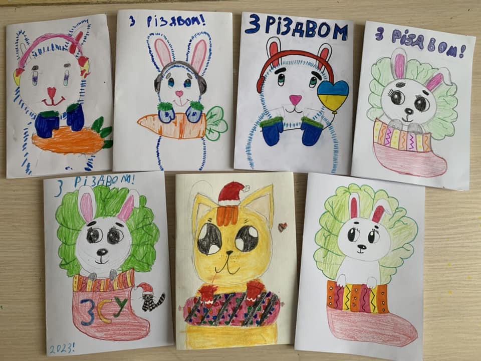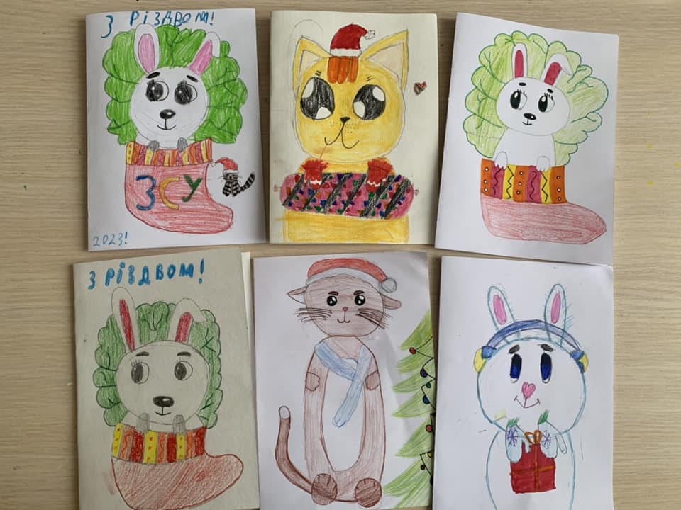 Листівки для захисників від Зразкова студія образотворчої діяльності «Райдуга» в рамках флешмобу «Київщина Різдвяна 2023»