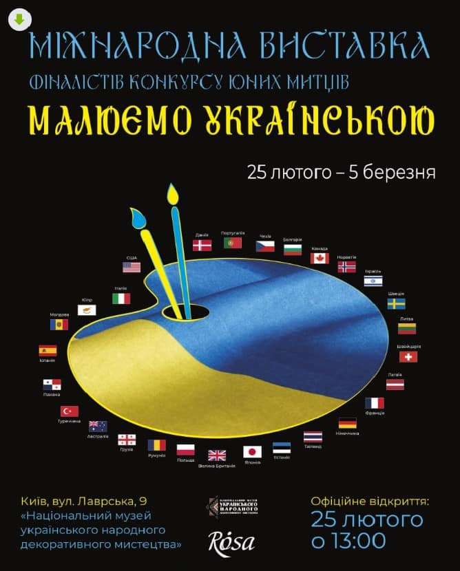 Відбулося офіційне відкриття виставки фіналістів Міжнародного конкурсу «Малюємо українською» у Національному музеї українського народного декоративного мистецтва. Для участі у конкурсі надійшло 1470 малюнків з 28 країн світу. В експозиції представлено 300 кращих конкурсних робіт, серед яких і роботи вихованців гуртка "Академія Олівця" Бориспільського БДЮТ "Дивоцвіт" - Марії Ільїної та Уляни Кірсанової.