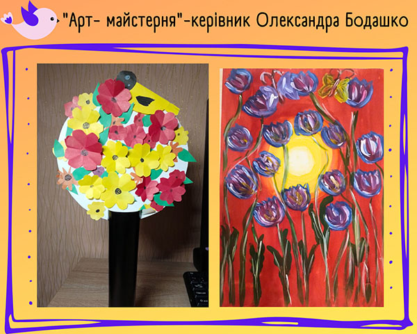 "Весна іде...", вона на крилах пташок, у кожній квіточці та травинці, у наших надіях і сподіваннях. Нехай у кожного вона буде теплою та сповненою добрих подій, буде яскравою, як чудові творчі роботи вихованців наших гуртків.