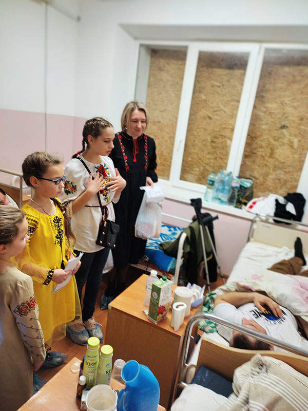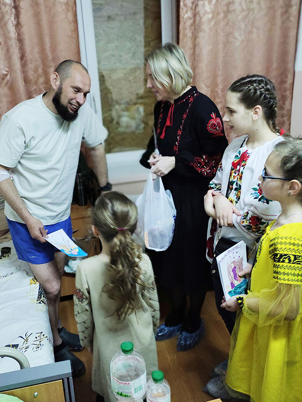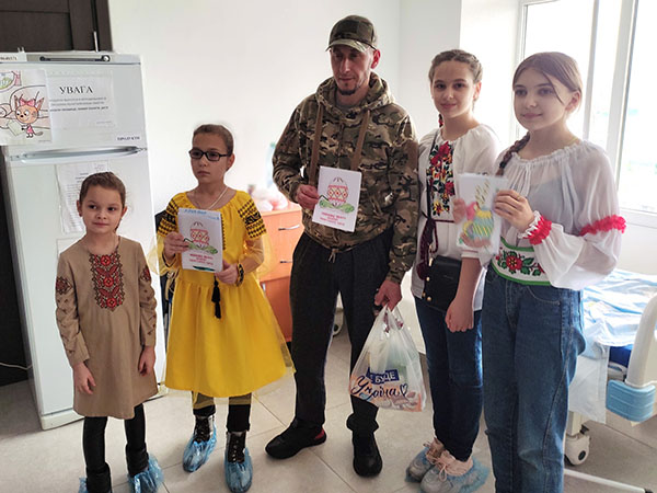 Великодній кошик для захисника: маленькі бориспільці відвідали воїнів у лікарні