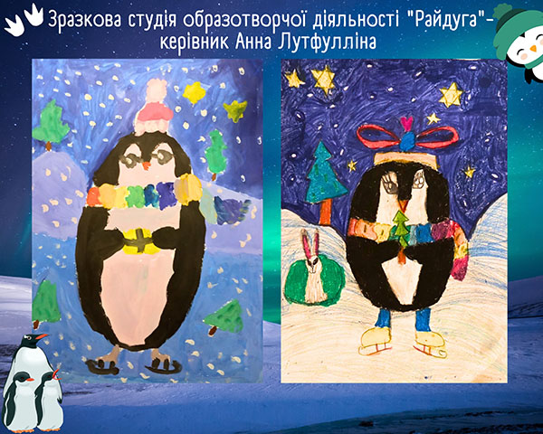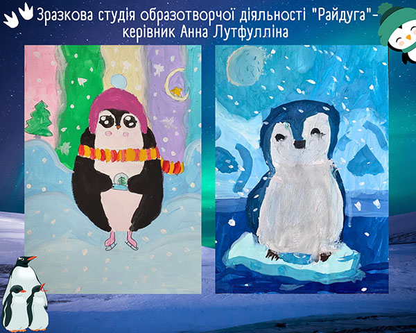 Мета Всесвітнього дня пінгвінів у нашому закладі, закликати дітей пам'ятати про необхідність берегти живе розмаїття природи. Тож наші художники не лишились осторонь і створили серію надзвичайно позитивних і яскравих малюнків про корінних мешканців Антарктиди.