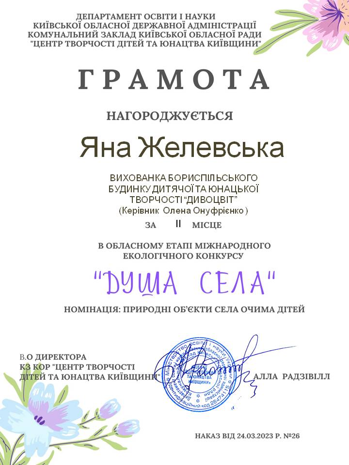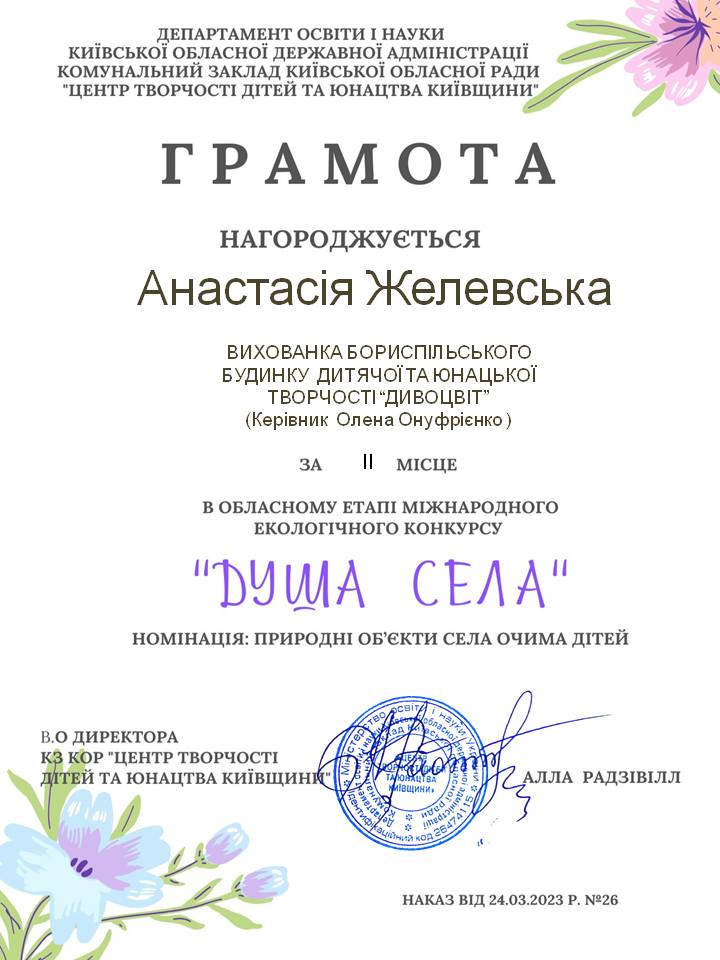 Наші перемоги в обласному етапі міжнародного екологічного конкурсу «Душа села»
