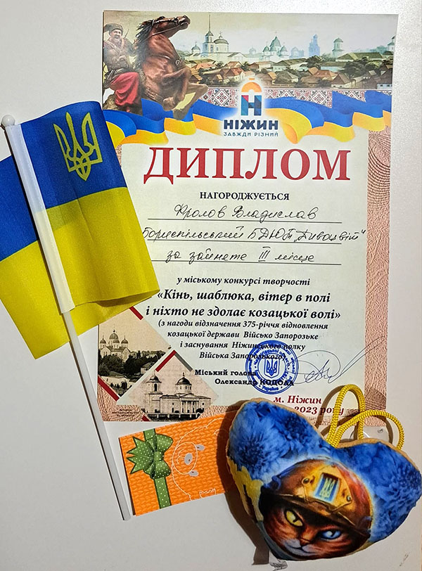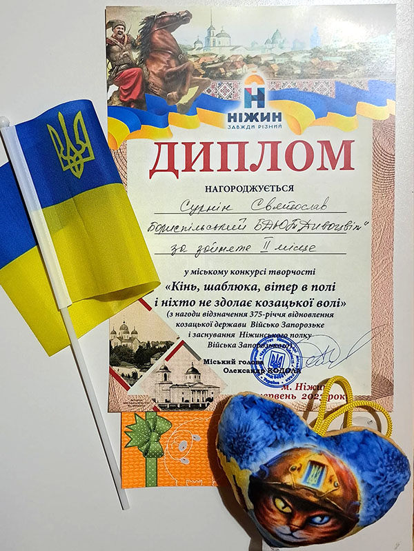 9 червня у Ніжинському міському будинку культури відбулося нагородження переможців міського конкурсу творчості "Кінь, шаблюка, вітер у полі і ніхто не здолає козацької волі!", який присвячений 375-річчю заснування Ніжинського козацького полку Війська Запорозького. Серед переможців і вихованці гуртка "Академія Олівця" Бориспільського БДЮТ "Дивоцвіт".