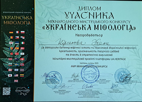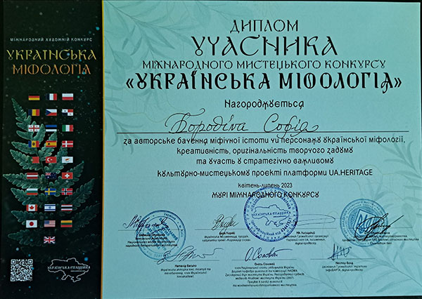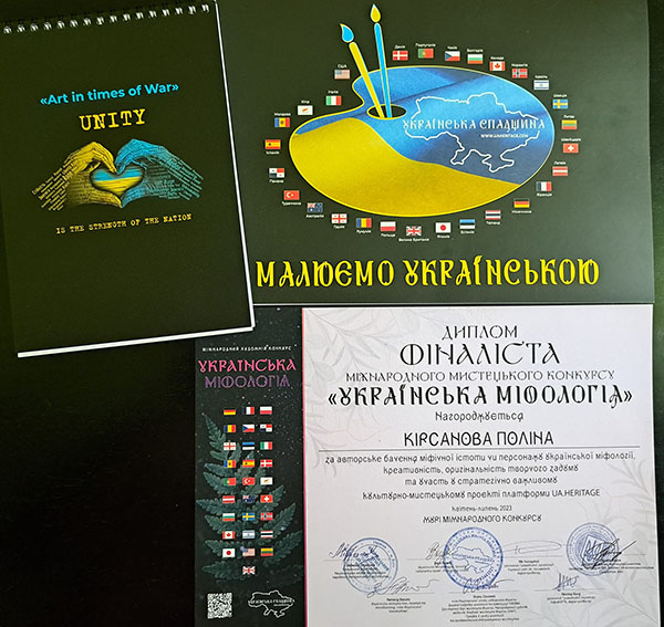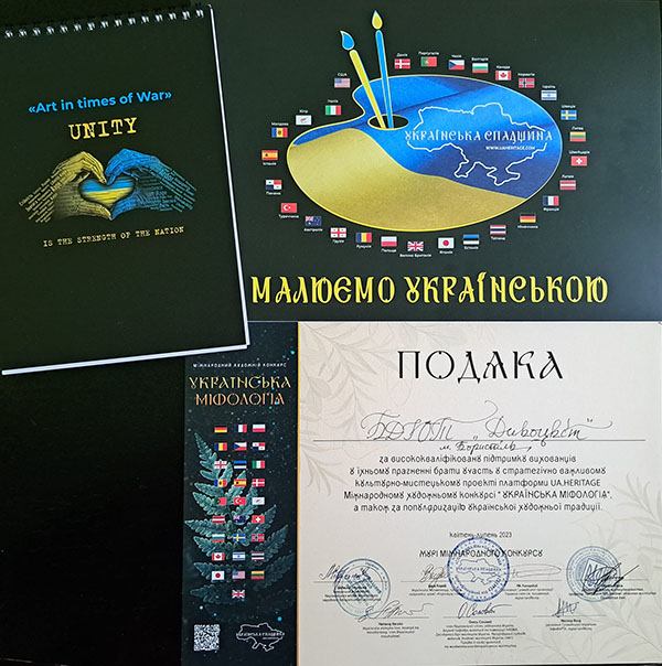 У фінал конкурсу увійшли і наші дві роботи від гуртка "Академія Олівця" Бориспільського БДЮТ "Дивоцвіт": "Лісовик - господар лісу" Кірсанової Поліни й "Відьма, та, що відає, тобто знає" Юлії Петренко. Дипломи за участь отримали: Кірсанова Уляна, Бородіна Софія, Ільїна Марія та Омельченко Віталіна.