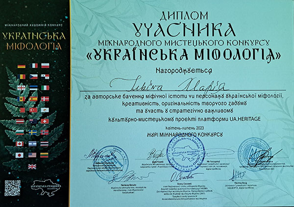 Сьогодні в Національному музеї українського народного декоративного мистецтва відбулося офіційне відкриття виставки та нагородження фіналістів Міжнародного художнього конкурсу «Українська МІФОЛОГІЯ». Хочу подякувати організаторам за надзвичайно цікаві проєкти, які популяризують українську культуру й мистецтво, дають можливість дітям усвідомити свою національну унікальність.