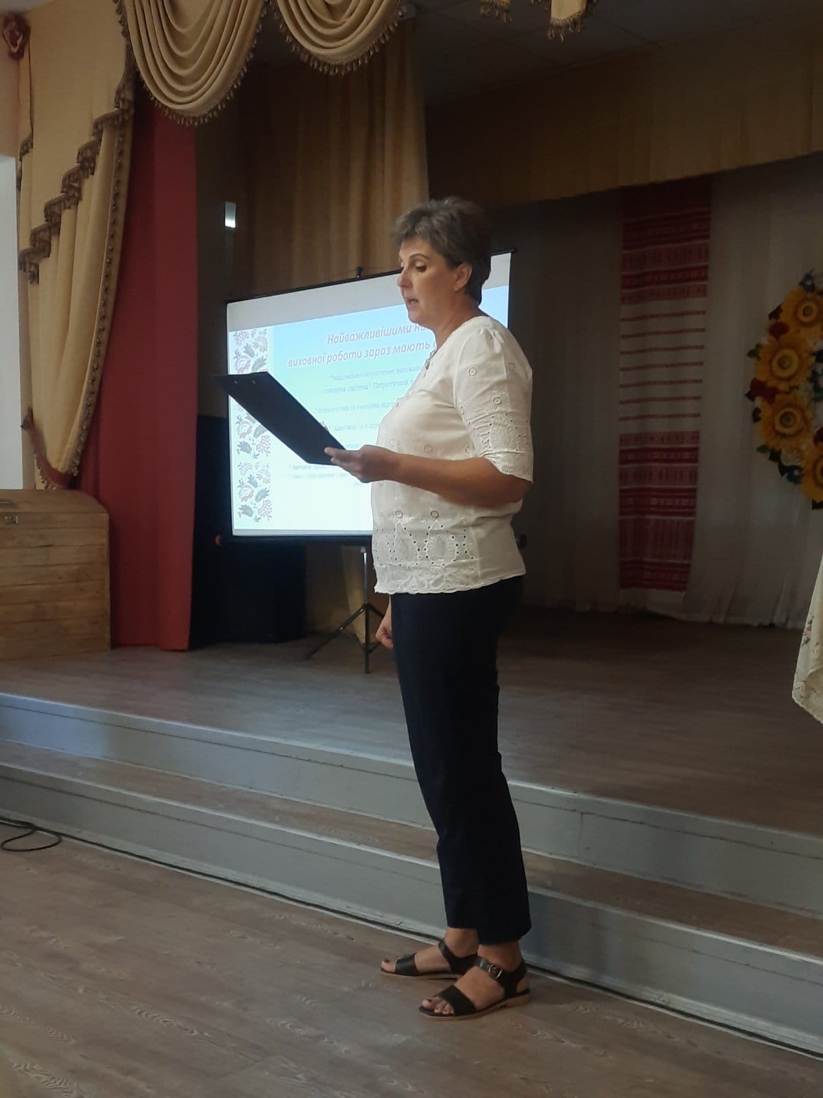 Ірина Кубрак, заступник директора з навчально-виховної роботи представила презентацію плану роботи на 2023-2024 навчальний рік, де основним питанням є національно-патріотичне виховання молоді, збереження безпечного освітнього середовища, що надзвичайно важливо в період воєнного стану. Розглянуті важливі освітні питання на засіданні педагогічної ради продукують нові ідеї та створюють простір для можливостей кожного педпрацівника.