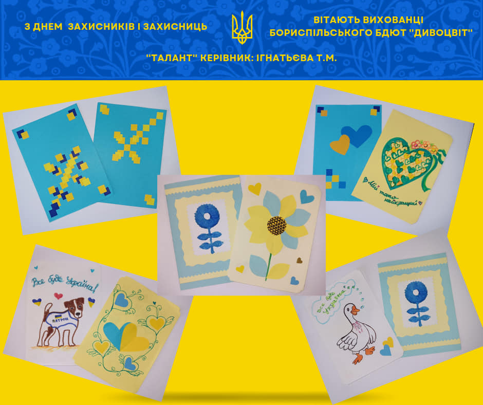 Вихованці та колектив Бориспільського БДЮТ "Дивоцвіт" вітають всіх захисників і захисниць України, які щодня роблять неймовірне та борються за нашу з вами перемогу!