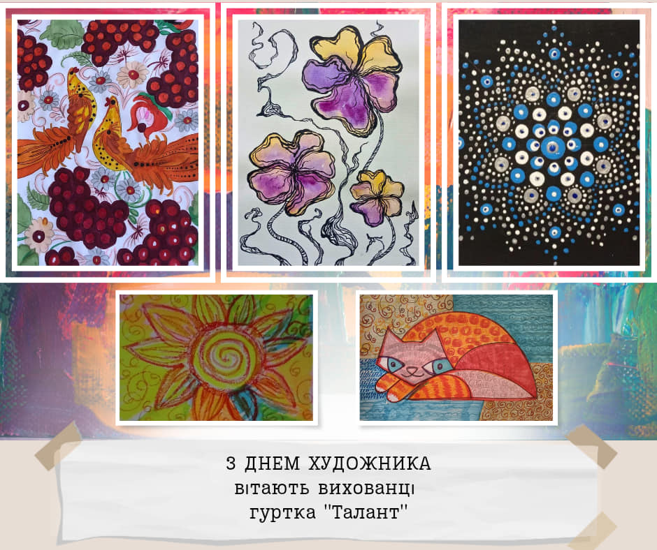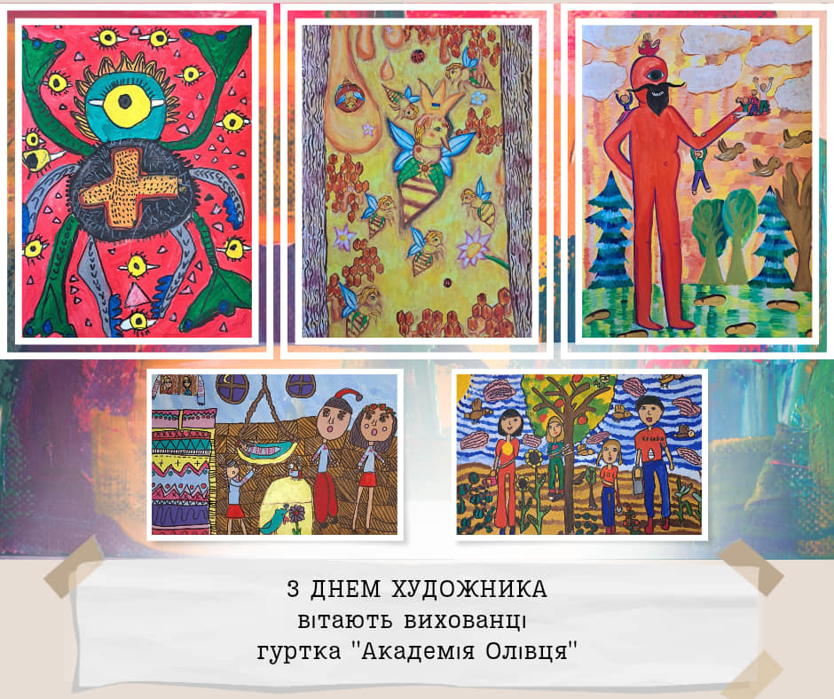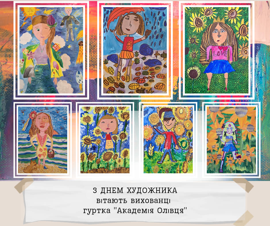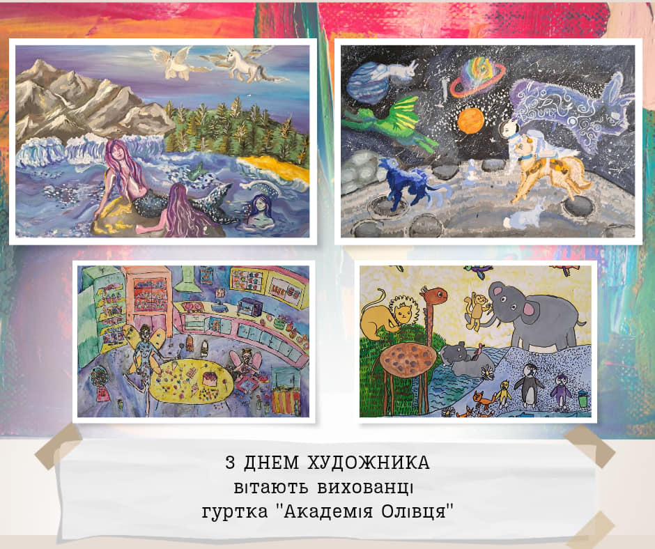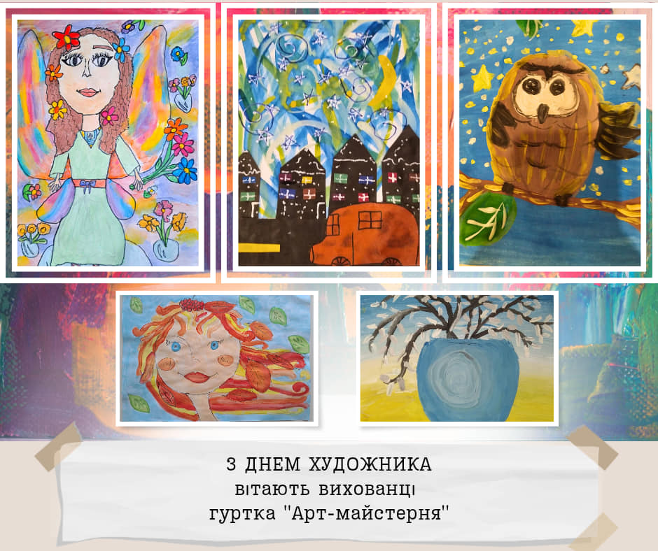 Дорогі друзі, щорічно у другу неділю жовтня, Україна святкує День художника! Символічно, що його ми відзначаємо у пору золотої осені, коли сама природа розгортає яскраве живописне полотно. Ми пишаємось творчими доробками вихованців закладу та запрошуємо вас поринути у дивовижний світ мистецтва в яскравих дитячих малюнках. Щиросердно бажаємо всім майстрам пензля невичерпної наснаги, нових цікавих ідей, щастя, здоров’я і добра.