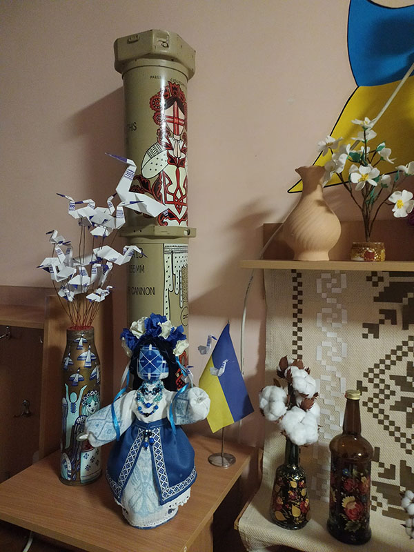 В дні відзначення дня захисника та захисниць України у нашому закладі з'явилася нова експозиція - "стіна Незламності". Маємо три частини, як три головні сторінки літопису: перша сторінка - це пам'ять генетичного коду нації - лялька-мотанка, та сила, яка захована у кожному моточку нитки, у кольорах стрічок, у намистинках...