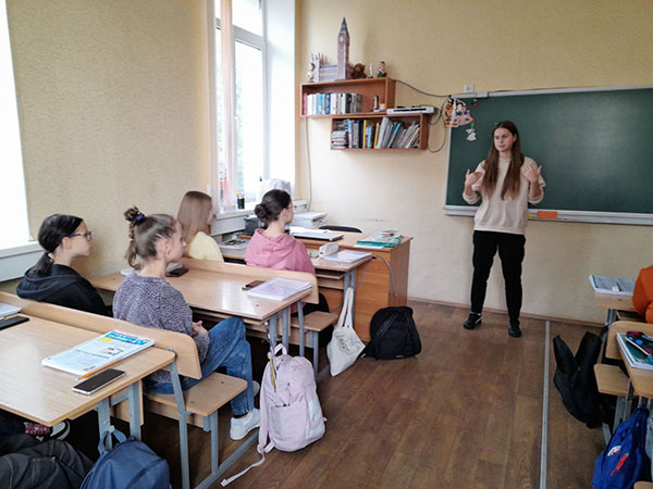 Сьогодні старші вихованці гуртка "Merry English" мали змогу поспілкуватись з Лізою Пилипчук. Вона є вихованкою БДЮТ та завдяки своїм лідерським навичкам, знанням англійської мови та програмі "You Lead" отримала змогу відвідати Сполучені Штати Америки (штат Міннесота). Ліза розповіла про свій досвід, про життя американців, про навчання в школах та університетах Америки. Діти отримали масу задоволення від спілкування та дізналися багато нової та корисної інформації.