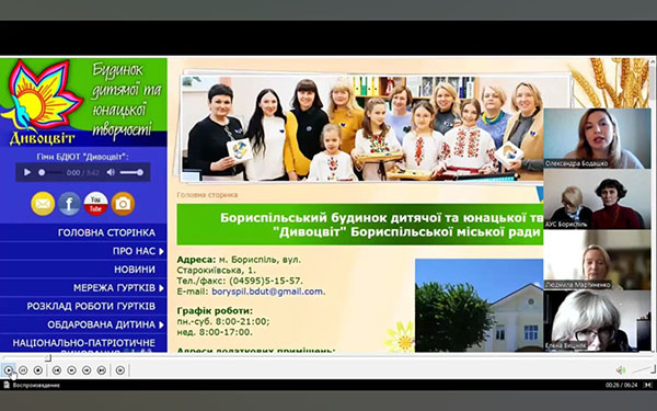 У Бориспільському БДЮТ "Дивоцвіт" відбулась онлайн - педагогічна студія з теми «Сучасні інструменти візуалізації освітнього процесу та практичні прийоми створення дидактичних матеріалів» орієнтована на керівників гуртків художньо-естетичного напряму (декоративно-ужиткового мистецтва), учителів мистецьких дисциплін (образотворчого мистецтва, інтегрованого курсу «Мистецтво»). Керівники: методист та керівник гуртка Олександра Бодашко та психолог Леся Демченко, координатор Валерій Гаврилюк, методист відділу виховної роботи та позашкільної освіти КНЗ КОЗ «Київський обласний інститут післядипломної освіти педагогічних кадрів».