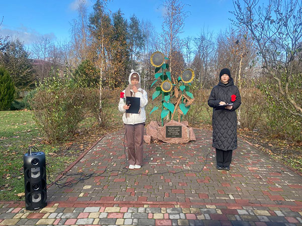 Звучали натхненні слова, мовлені дитячими вустами. Лідери учнівського самоврядування торкнулися до трагічних сторінок нашої історії, читали спогади і декламували вірші, присвячені страшним сторінкам нашої історії. Історія нашого народу – це невичерпна криниця духу, мудрості, перемог і страждань. Кожен народ має її, свою власну історію, глибоку і прозору або замулену й прикидану, але має ту, яку створив. Нашу історю намагались і замулити, і прикидати. Однак ніколи, ні в які часи не перевелись українці, які, припавши вустами до своєї криниці історії, не відчували б її могутньої цілющої живильності.