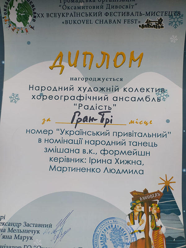 НХА «Радість» фіналісти ХХ Всеукраїнський фестивалю-конкурсу мистецтв BUKOBEL CHABAN FEST. Вітаємо з перемогами!