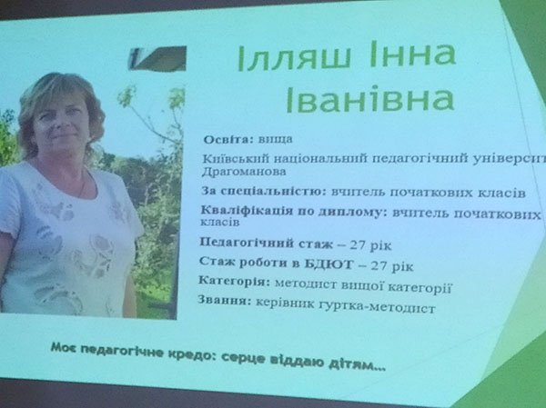Про свій професійний ріст розповіла Інна Іванівна, яка окрім підготовки до школи дітей, важливу увагу приділяє екологічному вихованню маленьких вихованців, працюючи за методикою В.Сухомлинського.