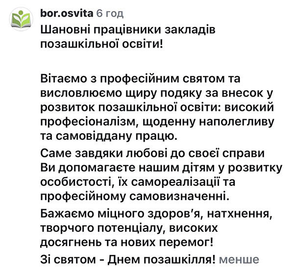 Колеги прийміть вітання від управління освіти та науки Бориспільської міської ради.