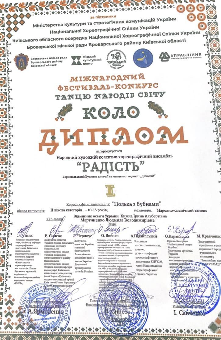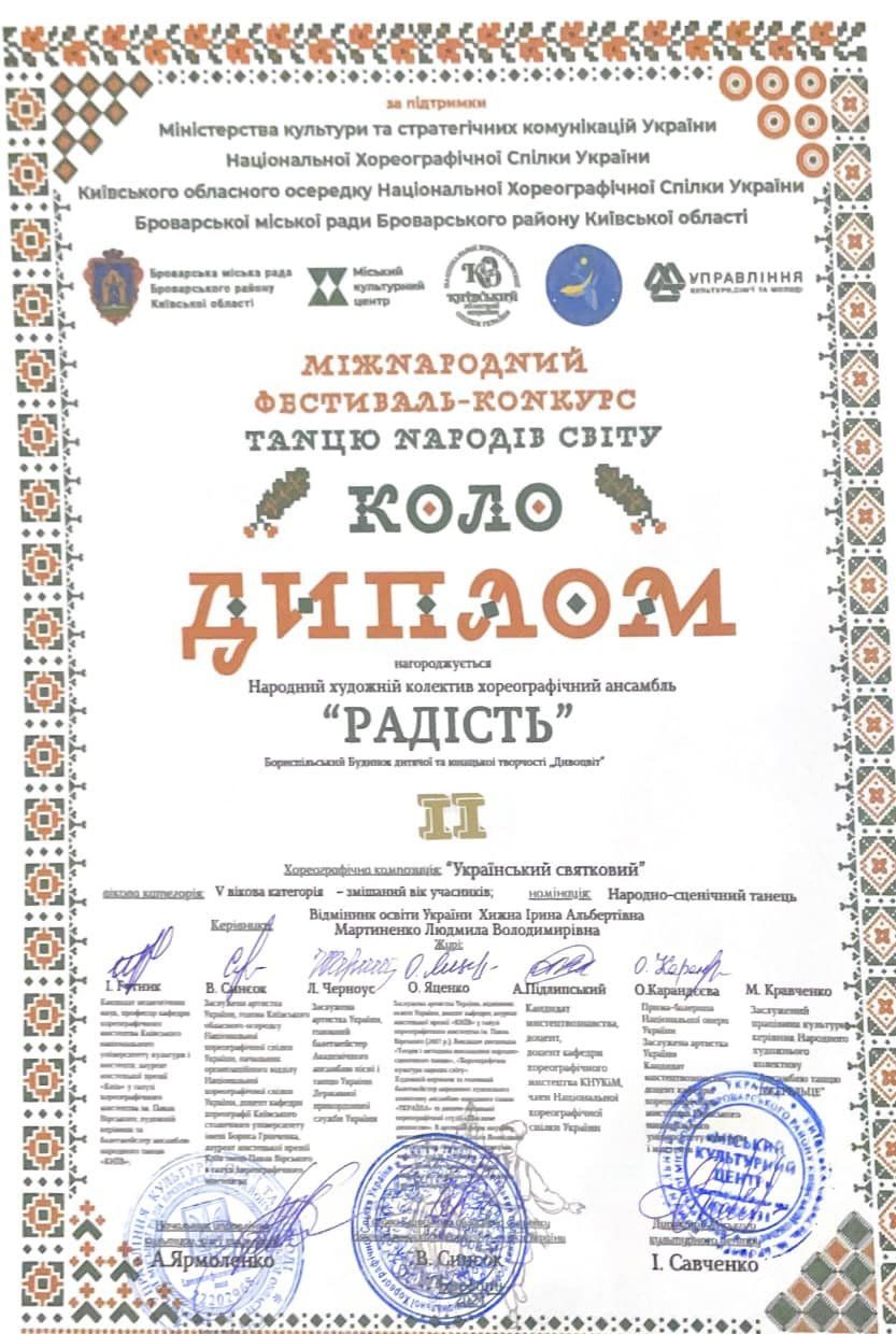 Народний хореографічний ансамбль «Радість» взяв участь у вже традиційному Міжнародному фестивалі-конкурсі «Коло», м.Бровари. Колективи народного танцю із столиці, Київщини, регіонів України, демонстрували свою майстерність. Яскраве танцювальне дійство, більш 90 номерів народної хореографії, конкуренція та високий рівень учасників вражали! Вітаємо НХА «Радість» із гідним виступом та призовими місцями у двох категоріях. Дякуємо ЗСУ за можливість працювати !