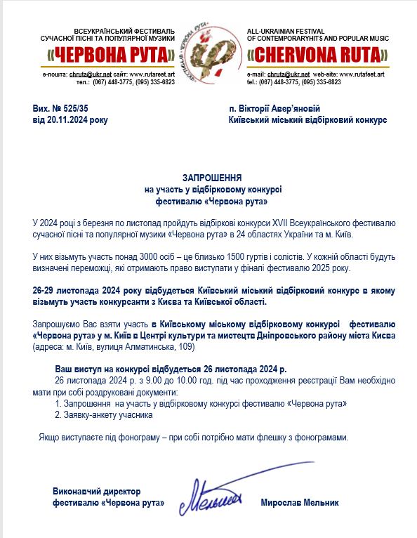 Авер'янова Вікторія, солістка вокального колективу "Cherry-berry" їде на легендарну "Червону Руту" - регулярний безкоштовний всеукраїнський молодіжний фестиваль сучасної пісні та популярної музики, що проводиться з 1989 року, обласні відбіркові тури - в кожній, без винятку, області України. Серед минулих учасників конкурсу - "Брати Гадюкіни", "Воплі Відоплясова", Марія Бурмака, Ірина Білик та інші зірки української естради. Дякуємо організаторам конкурсу за запрошення, за можливість бути серед професіоналів. Тримаємо кулаки та вболіваємо за Вікторію.