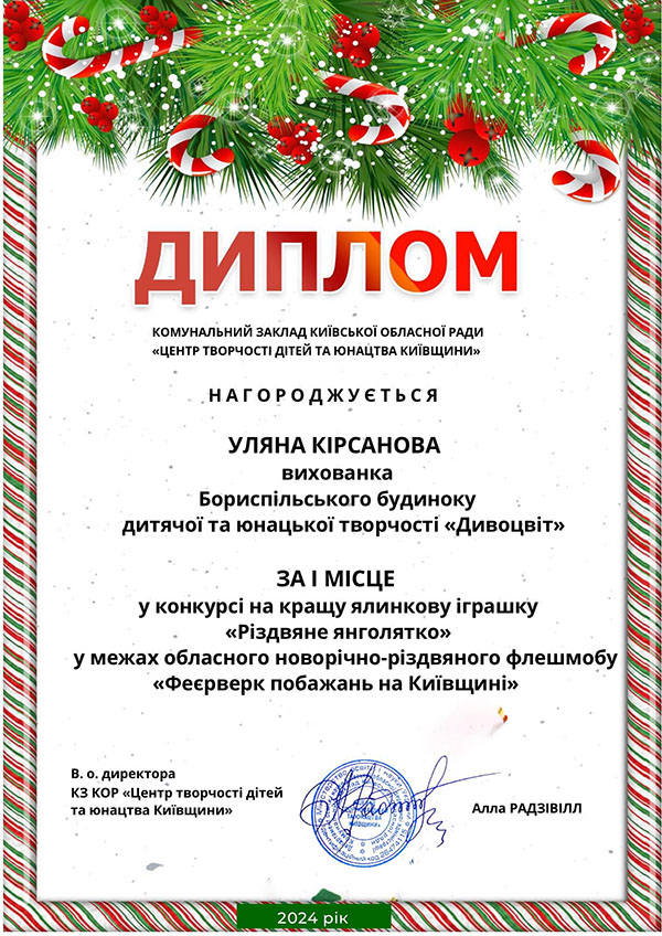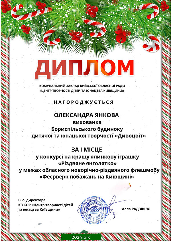 Вітаємо переможців конкурсу на кращу ялинкову іграшку «Різдвяне янголятко» у межах обласного новорічно-різдвяного флешмобу «Феєрверк побажань на Київщині»:
