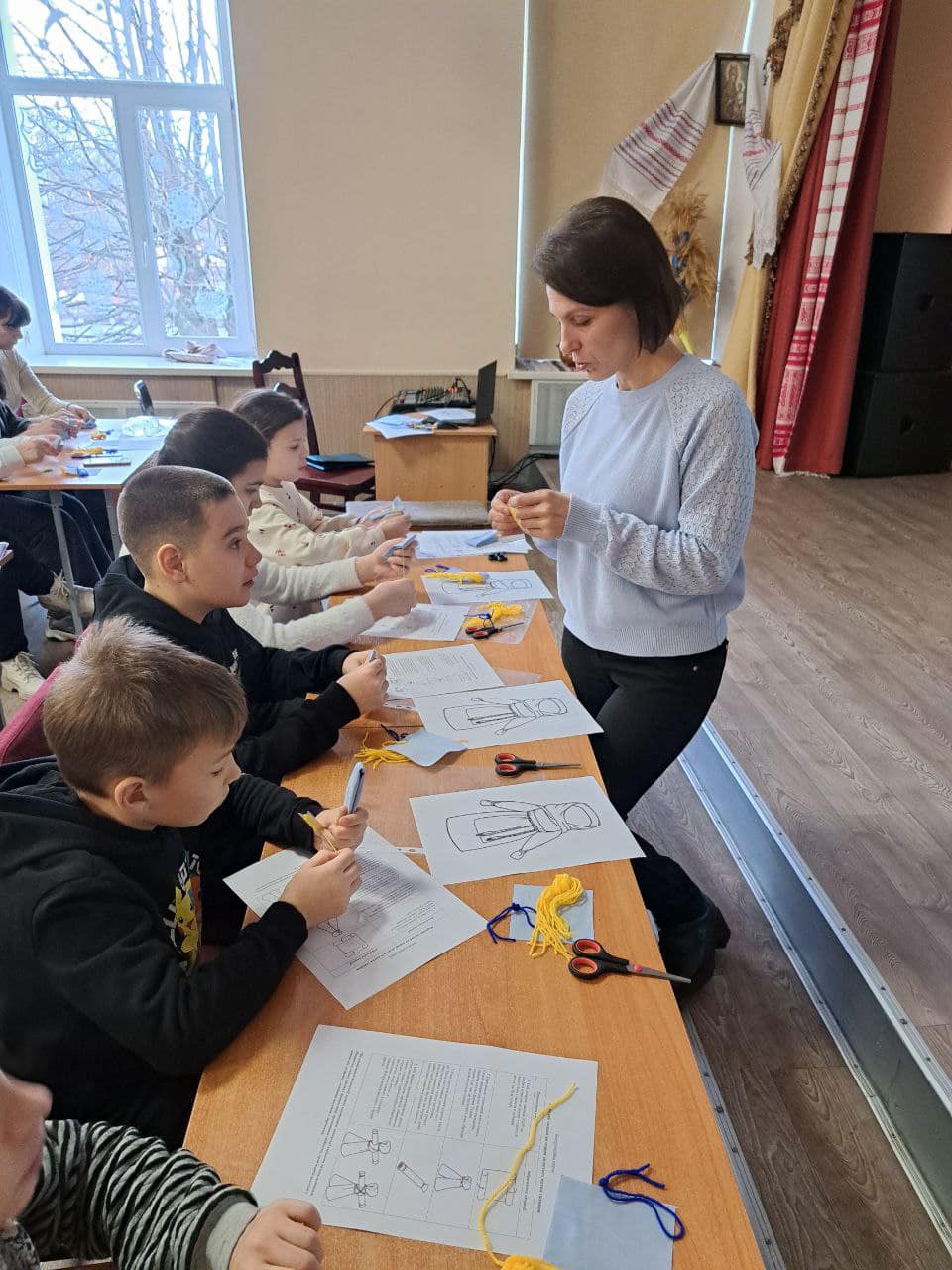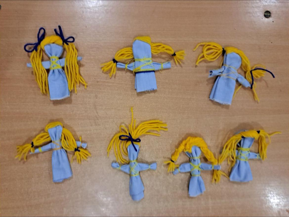 В рамках різдвяної майстерні в Бориспільському БДЮТ «Дивоцвіт» відбувся майстер-клас для дітей молодшого шкільного віку з теми: «Народна лялька. Виготовлення ляльки-мотанки на основі зігнутого шматка тканини». Хайнюк Олена Іванівна, керівник гуртка «Оберіг» на високому професійному рівні провела не тільки пізнавальний екскурс в світ української народної ляльки, але й представила техніку виготовлення ляльки-мотанки за технологічною картою. Сьогодні в гості до нас завітали учні ліцею імені Павла Чубинського зі своїм вчителем Юлією Цвілюк. Діти з великою радістю виготовили свої вироби, які можна використати для ігор чи подарунків. Така творча робота дає можливість закласти в серця маленьких українців основи моралі, добра та любові. Заняття з виготовлення оберегу відвідали колеги Олени Іванівни. Відновлюємо українські традиції!!
