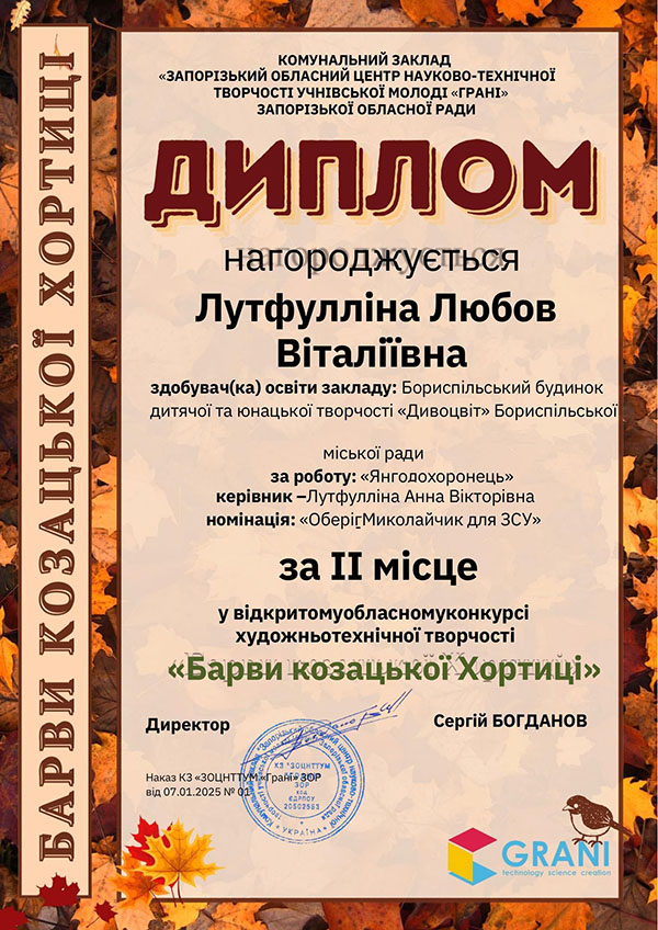 - Лутфулліну Любов - 2 місце;