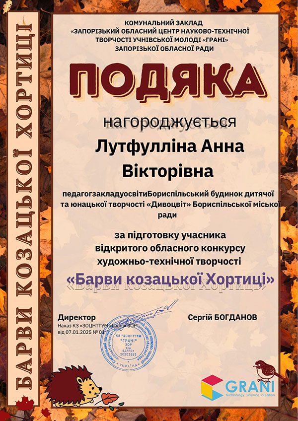 Вітамо переможців відкритого обласного конкурсу художньо-технічної творчості «Барви козацької Хортиці»! Вихованці Зразкової студії образотворчої діяльності «Райдуга» (керівник Анна Лутфулліна):