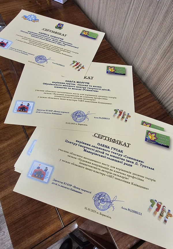На базі Будинку дитячої та юнацької творчості “Дивоцвіт” Бориспільської міської ради відбувся обласний методичний міст для керівників і вихованців дитячих театрів ляльок на тему “Художня комунікація як ключова професійна компетентність акторів-лялькарів”. Захід проходив у межах обласного івент-кластера “ART-покоління Київщини”. Організатори – департамент освіти і науки Київської обласної військової адміністрації, КЗ КОР “Центр творчості дітей та юнацтва Київщини”. До заходу долучилися керівники лялькових театрів закладів освіти з Білоцерківської, Бориспільської, Дівичківської, Дмитрівської, Кагарлицької, Макарівської, Обухівської та Таращанської територіальних громад.