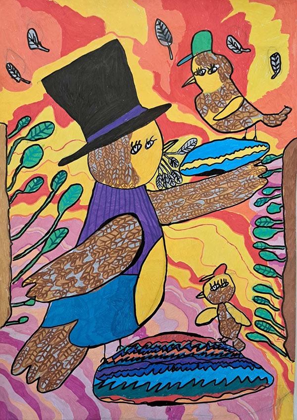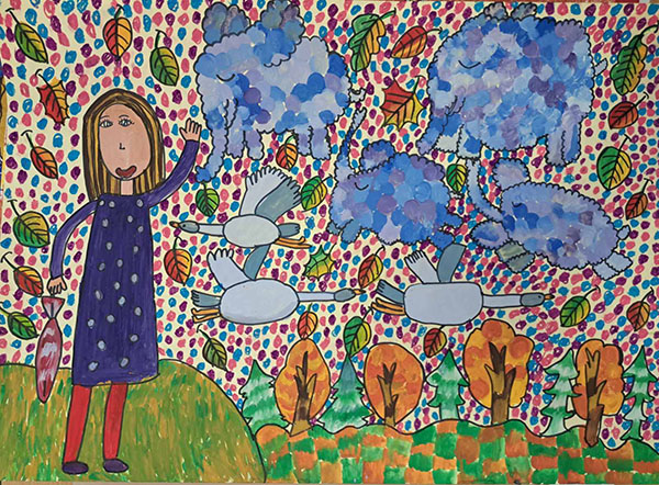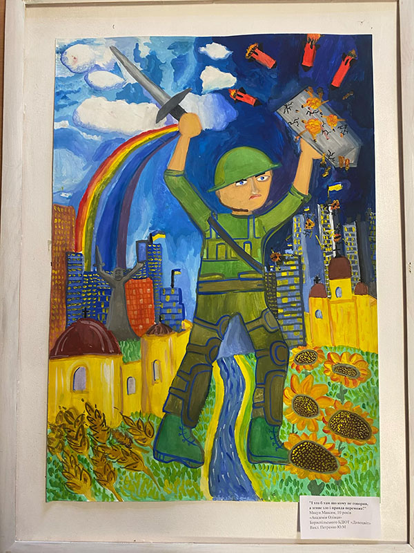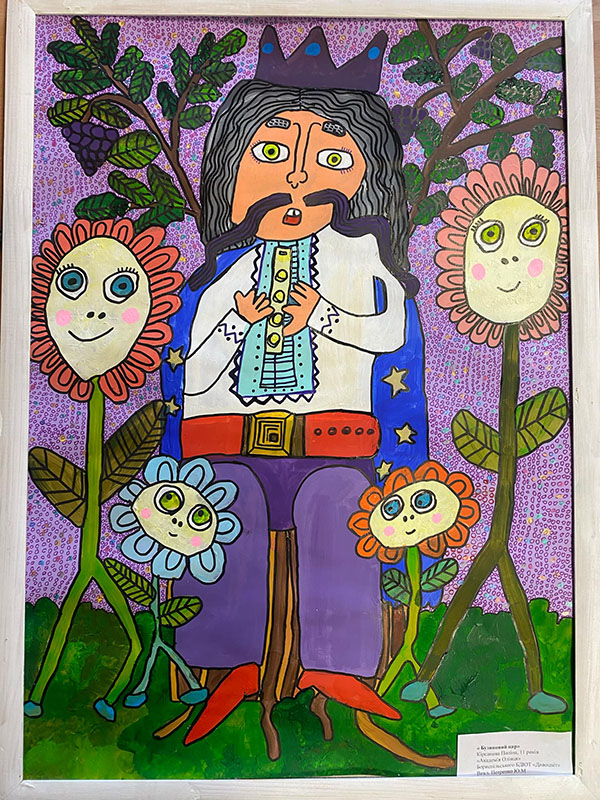 Всім відомо, що Ліна Костенко пише і для дітей. Саме для них поетеса видала збірку «Бузиновий цар». Герої збірки — незрадливі, довірливі діти сонця, що спраглими очима відкривають для себе великий світ, сповнений краси і таїни, радіють кожній щасливій миті свого життя. А вихованці гуртка «Академія олівця» Центру творчості «Дивосвіт» Бориспільської міської ради (директор Тименко Наталія Іванівна) підхопили ідею від нашого музею і стали учасниками мистецького конкурсного проєкту «Ліна в дитячих малюнках», яскраві роботи яких гості літературно-музичного бенефісу «Душа летить в дитинство як у вирій» змогли побачити на імпровізованому вернісажі. А ще для виставки додали роботи, що відображають сучасний світ воєнного стану в Україні.