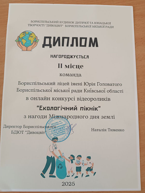 - ІІ місце - Бориспільський ліцей ім. Юрія Головатого; Глибоцький ліцей;
