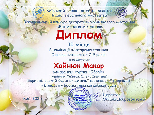 - Хайнюк Макар - 2 місце;