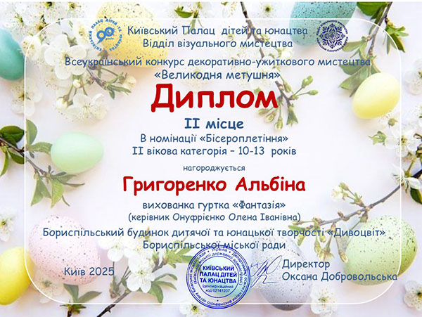 - Григоренко Альбіна - 2 місце.