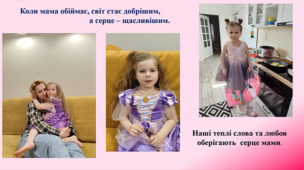 Шановні мами! Щиро вітаємо вас із Днем матері! Ваша любов, турбота та безмежна відданість — це основа щасливого дитинства. Дякуємо за довіру, підтримку та спільну працю в ім'я добробуту наших дітей. Бажаємо вам міцного здоров'я, радості, родинного затишку та натхнення! З повагою та любов'ю — керівники й вихованці гуртка "Малятко".