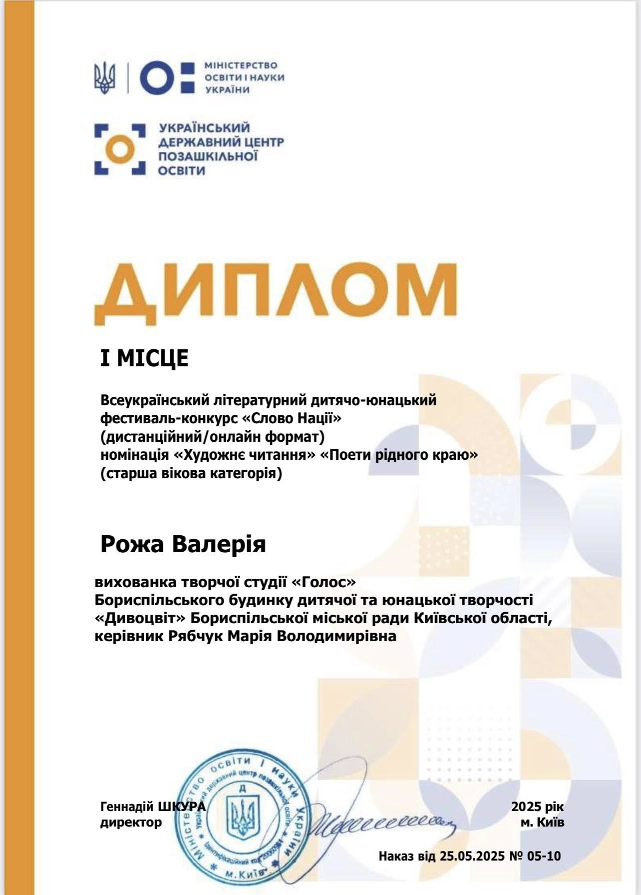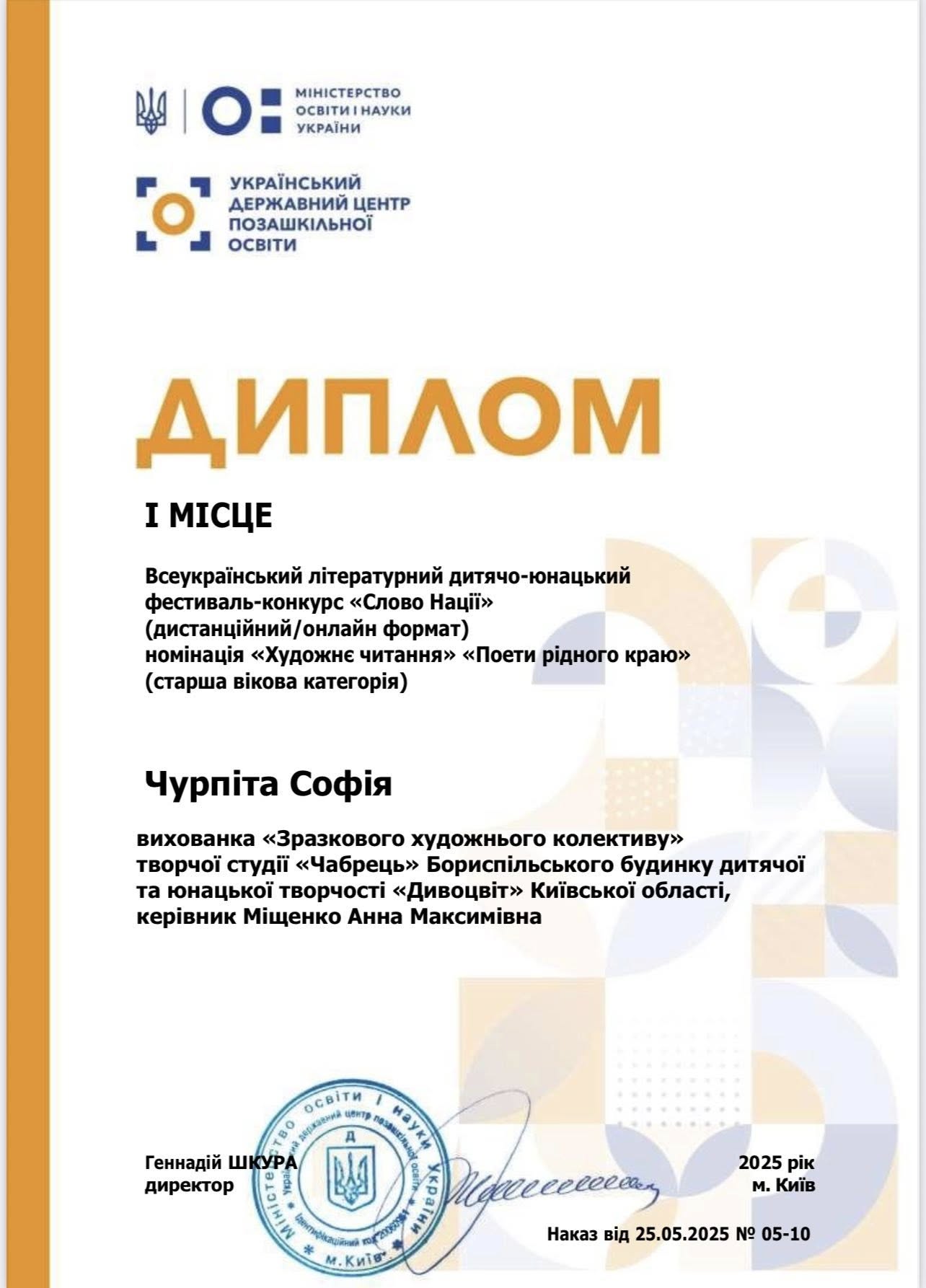 Вітаємо переможців - вихованців нашого Бориспільського будинку дитячої та юнацької творчості «Дивоцвіт»: