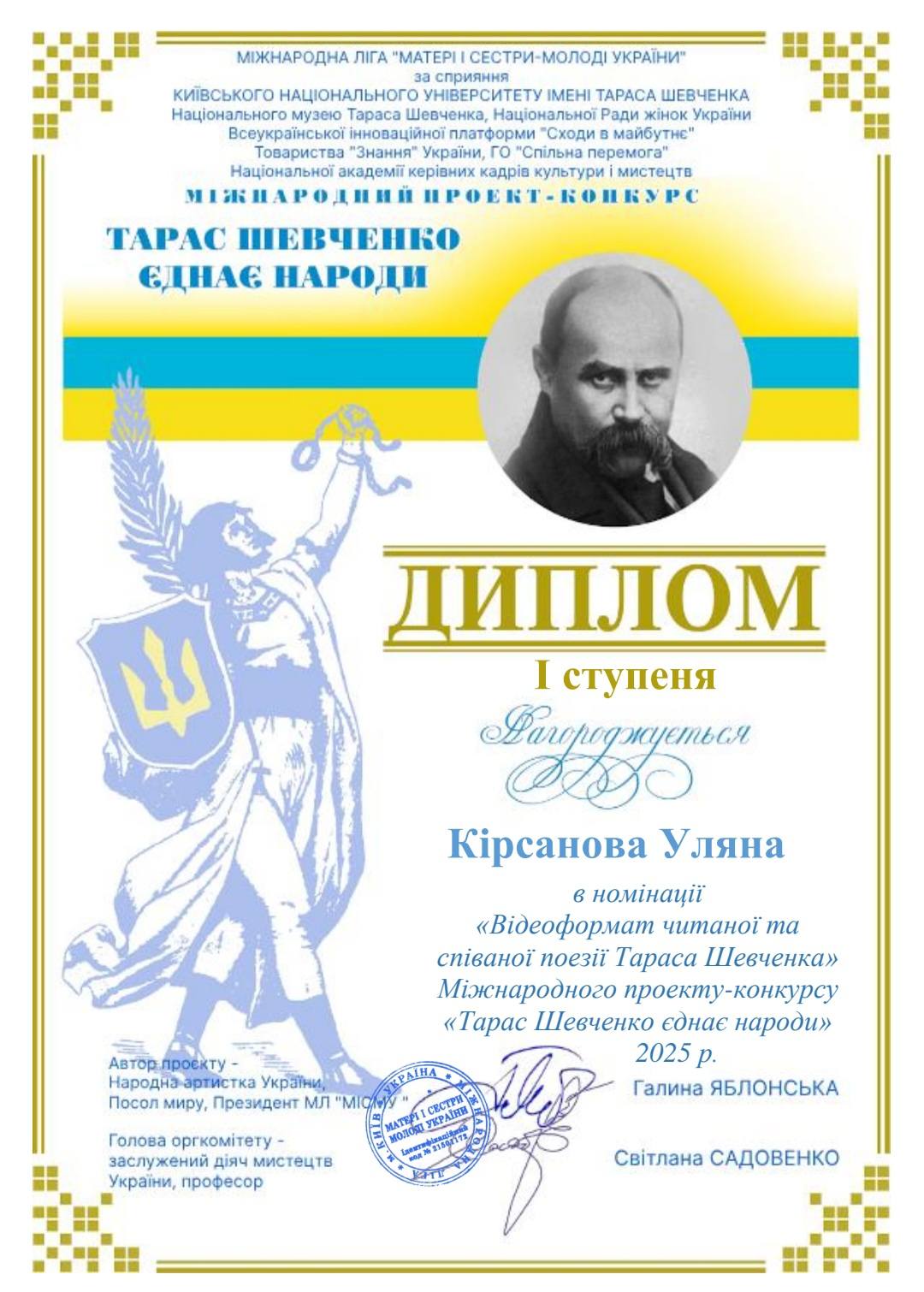 Вихованки зразкової творчої студії «Чабрець» — Поліна та Уляна Кірсанови разом зі своєю талановитою наставницею Наталією Іванівною Тименко розпочали навчальний рік з перемог! На Х Міжнародному проєкті-конкурсі «Тарас Шевченко єднає народи» дівчата вибороли призові місця:
