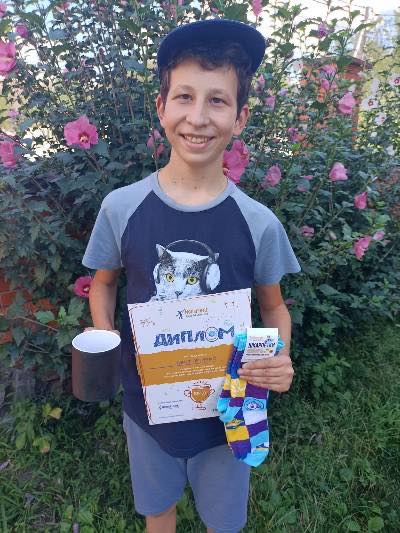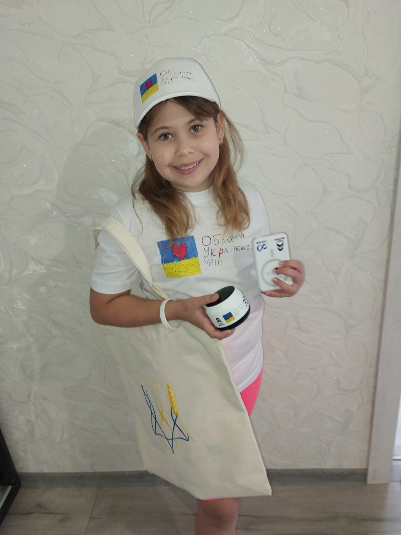 Тимур отримав шкарпетки з космічним малюнком і термочашку зі своїм малюнком. Під дією гарячої води проявляється його космічний малюнок. Дякуємо Noosphere/Ноосфера за такі креативні подарунки. Владислава від Всеукраїнське об'єднання Патріот отримала шопер, футболку, кепку, колонку і навіть павербанк за свій чудовий патріотичний малюнок "Дівчина-військовий". Діти дуже зраділи подарункам. Тож подовжуємо малювати і радувати всіх оточуючих.
