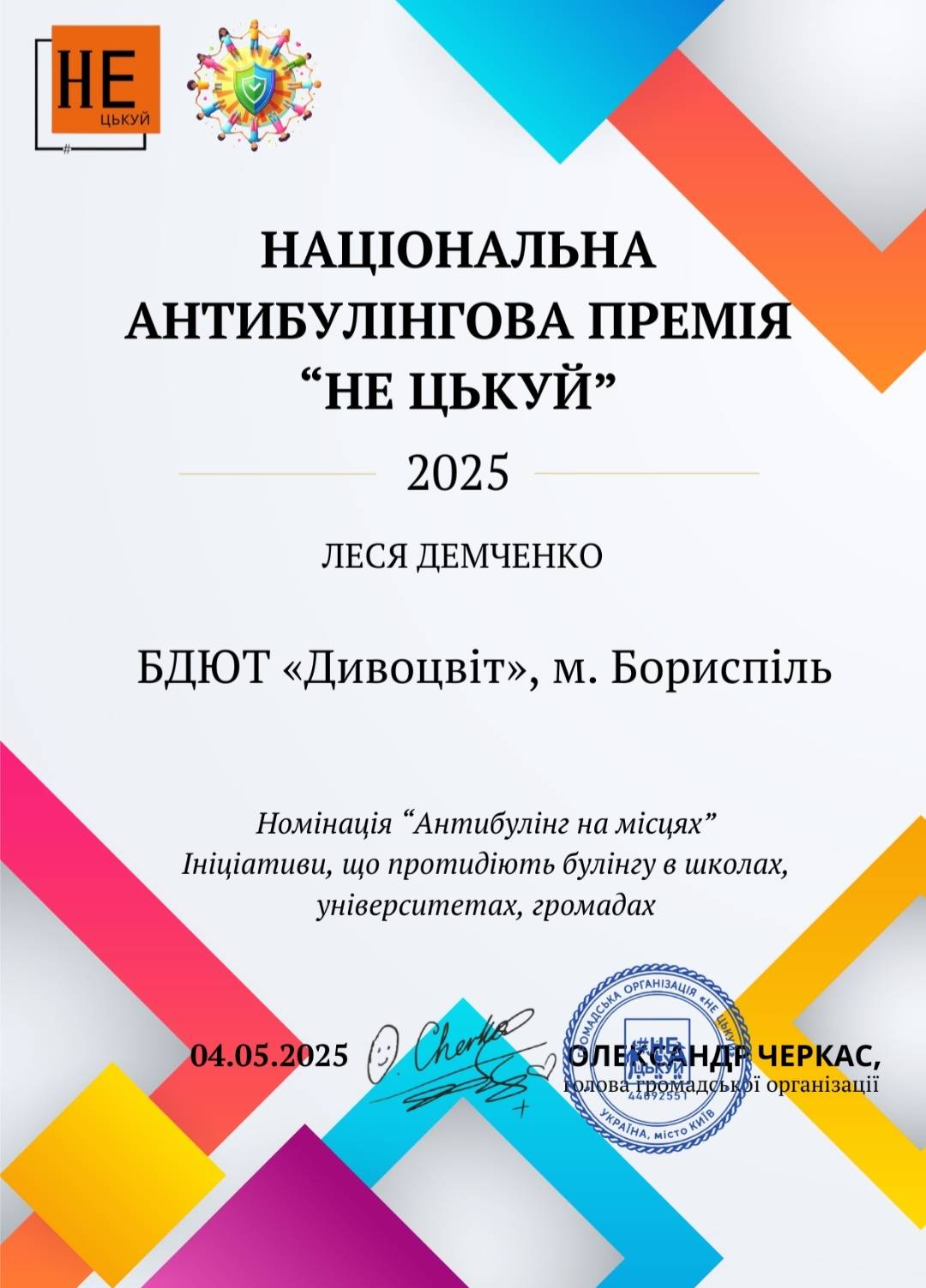 У сучасному освітньому середовищі питання емоційної безпеки дітей набуває особливої актуальності. Саме тому в БДЮТ "Дивоцвіт" започатковано директором Наталією Тименко і щорічно проводяться психологом Лесею Демченко та методистом Анною Міщенко цикли тренінгів з протидії булінгу — як крок до створення атмосфери довіри, взаємоповаги та підтримки.