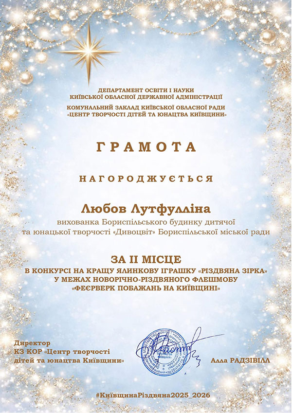 Приємно отримувати такі чудові новини в день Різдва Христового! Дівчата дуже постарались порадували нас і жюрі. Вітаємо переможців Обласного новорічно-різдвяного конкурсу на кращу ялинкову іграшку «Різдвяна зірка»!