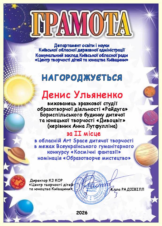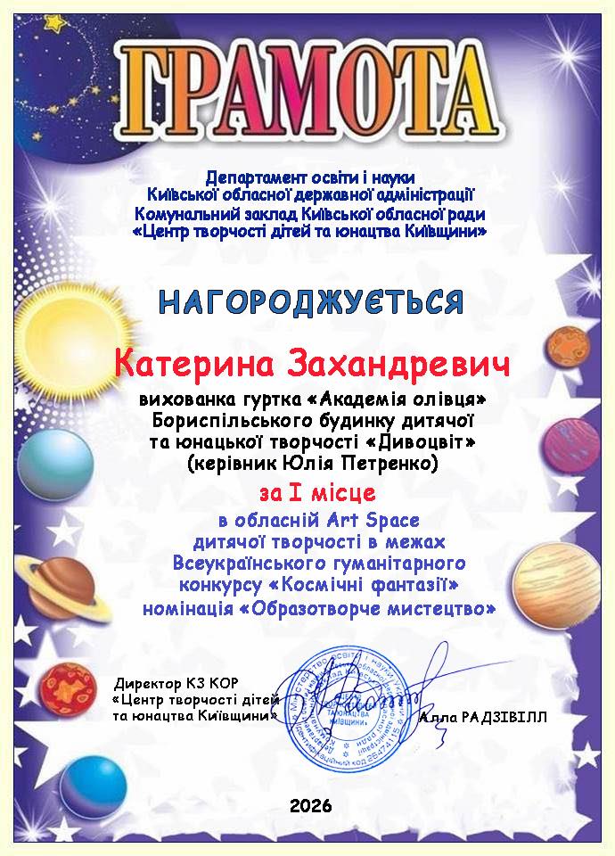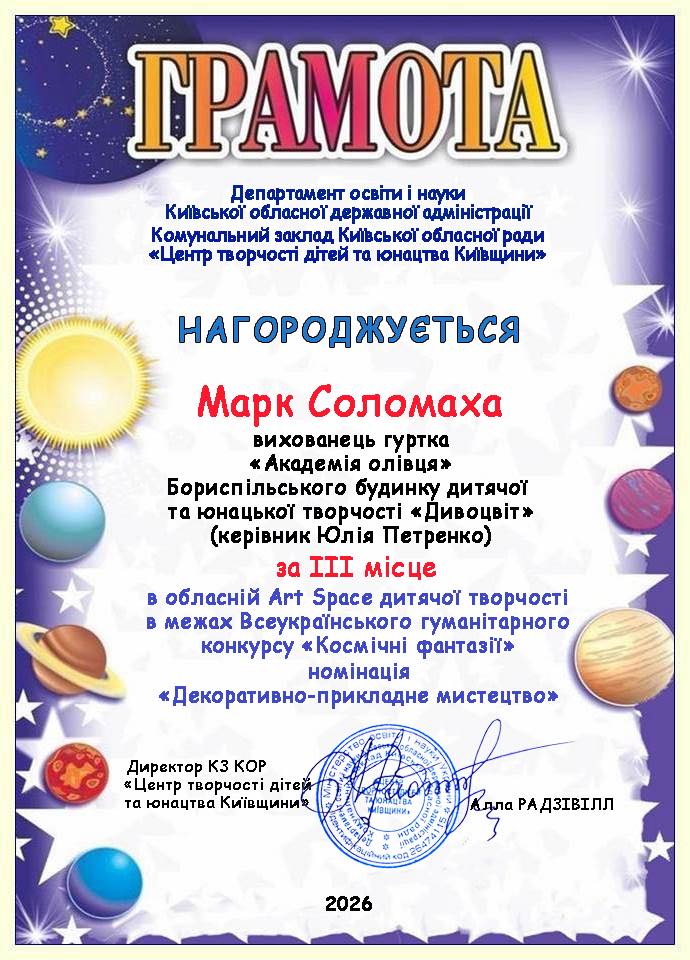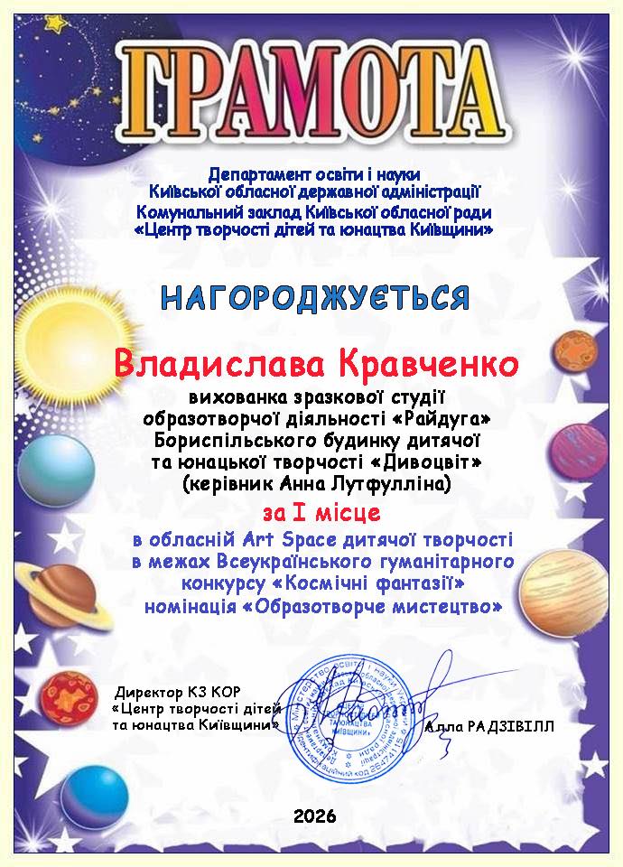 Переможців обласного етапу Всеукраїнського гуманітарного конкурсу «Космічні фантазії»: