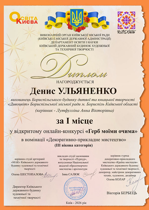 В день святкування Державного Герба вихованці взяли участь в відкритому онлайн конкурсі «Герб моїми очима-2026». Вітаємо з перемогою!
