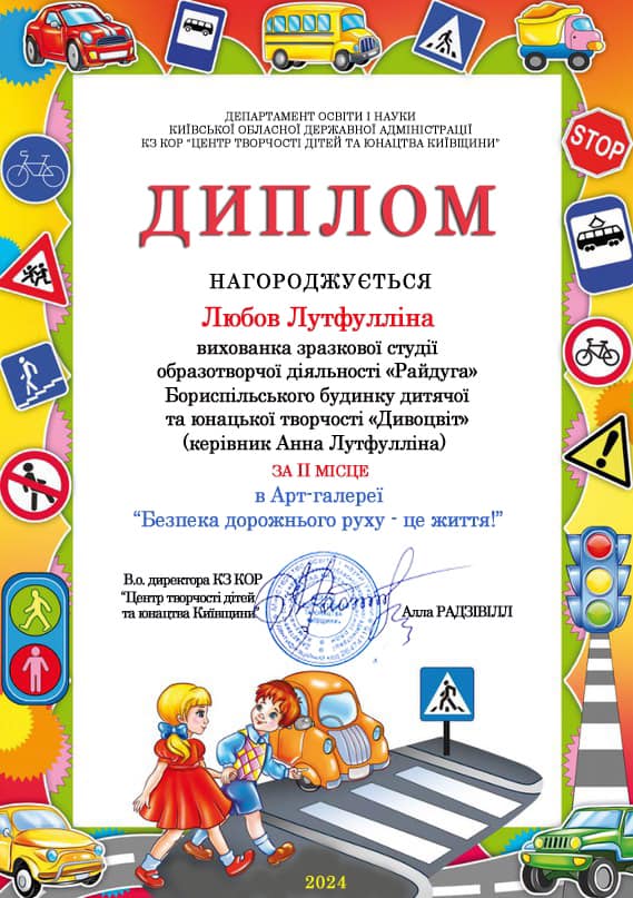 Любов Лутфулліну, вихованку зразкової студії образотворчої діяльності «Райдуга» Бориспільського будинку дитячої та юнацької творчості «Дивоцвіт» (керівник Анна Лутфулліна) ЗА ІІ МІСЦЕ в Арт-галере... » Читати далі