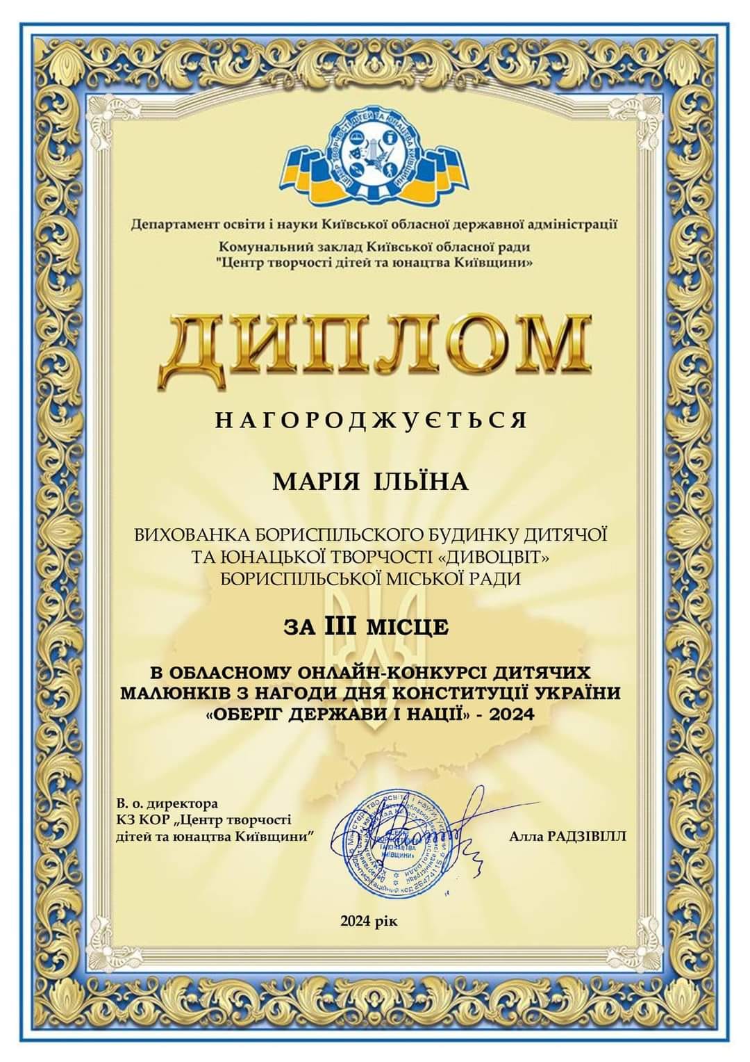 З нагоди Дня Конституції України відбувся обласний онлайн-конкурс дитячих малюнків «Оберіг держави і нації». Вихованка гуртка "Академія Олівця" Бориспільського БДЮТ "Дивоцвіт" Ільїна Марія посіла ... » Читати далі