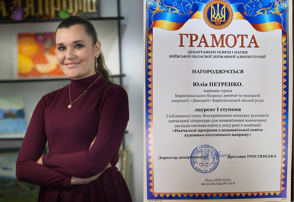 27.11.2023 - Керівниця «Академії Олівця» Юлія Петренко отримала перемогу в обласному конкурсі навчальних програм з позашкільної освіти художньо-естетичного напряму